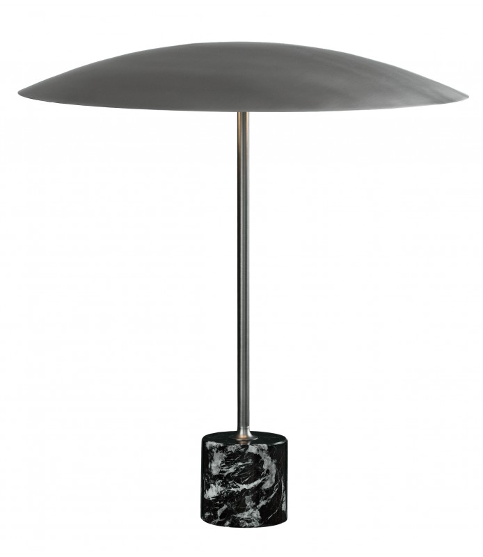 DRUMS design Fambuena Lab 2019 Drums es una colección de sobremesas metálicos decorados en latón, bronce, pewter y níquel negro, combinados con base de mármol en cuatro acabados (blanco, negro, verde y marrón) con un difusor de tubo pírex satinado. La fuente de luz está compuesta por dos bombillas G9 LED con luz cálida.