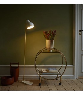 The VL38 floor lamp is based on the original design of the VL38 table lamp. The VL38 table lamp was originally designed in the late 1930s by Vilhelm Lauritzen in collaboration with Louis Poulsen for the construction of the Radiohuset (the Danish radio station) building in Copenhagen (today the Royal Danish Academy of Music).