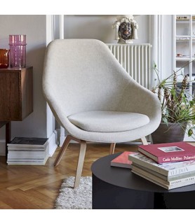 With a moulded plywood frame this version is offset by the minimalist wooden frame, creating a slightly more angular expression. It is available in a low-backed version or in a high-backed version with a more spacious feel. The wide choice of cushions, legs and upholsteries mean you can configure unique combinations that fit a variety of public and private contexts. Fixed seat cushion mounted with Velcro.