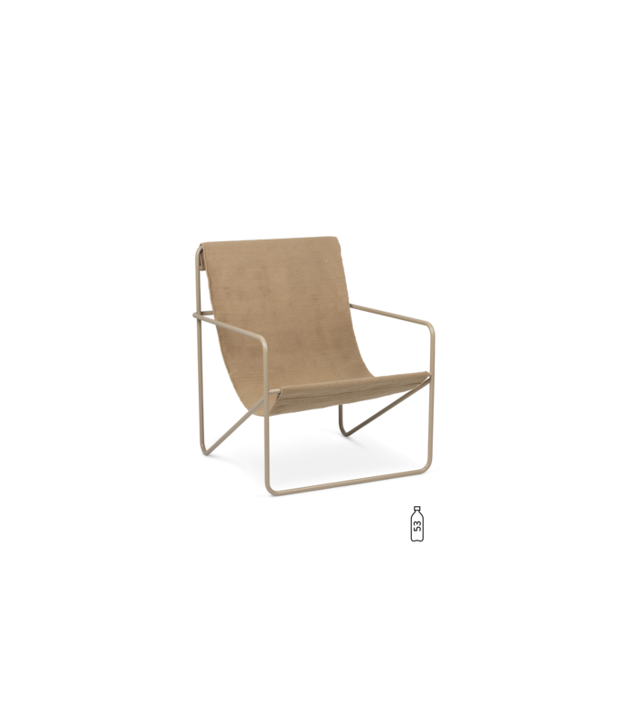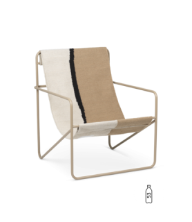 A modernist chair with a sleek profile, the Desert Lounge Chair is crafted from a powder-coated tubular steel frame and supports a hand-woven interchangeable textile seat made entirely from post-consumer recycled plastic that has been spun into PET yarn. Suitable for both indoor and outdoor use, the lounge design invites relaxation.