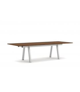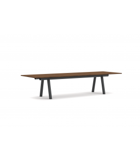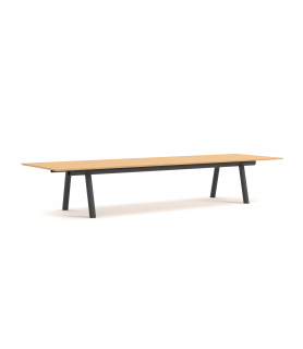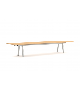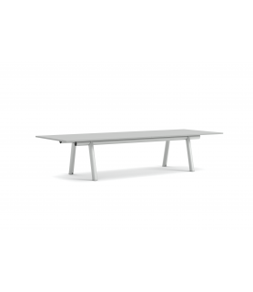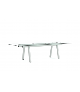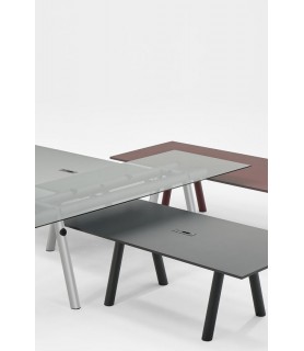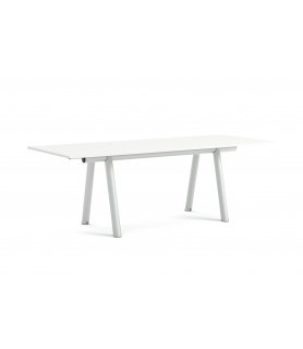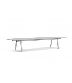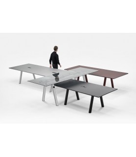 Inspired by traditional Japanese bamboo craftmanship, Stefan Diez’s Boa Table is a contemporary take on the conference table typology. The tubular frame is made entirely from Hydro CIRCAL aluminium, a recycled aluminium made from a minimum of 75% recycled post-consumer scrap, which is extruded in Denmark using renewable energy. The aluminium is converted into flexible industrial aluminium profiles that are bent into place during assembly, providing a lightweight, agile solution with a flat-packed design. Customizable tabletops are offered in linoleum, laminate, wood or glass, with the frames available in multiple colours and sizes.