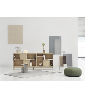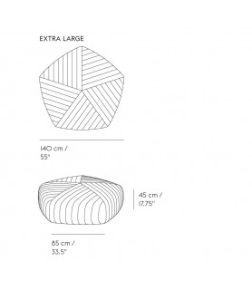 El pouf Five de Muuto tiene una forma pentagonal, con una estructura de madera y un asiento de espuma alcolchado con un diseño que juega entrelazando figuras triangulares con un patrón lineal. Es un pouf muy versátil y fácilmente adaptable a varias configuraciones, es una pieza que perfectamente complementa a cualquier sofá aportanto un toque característico.