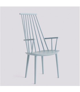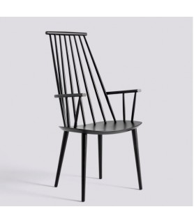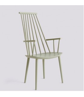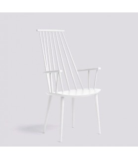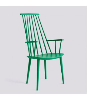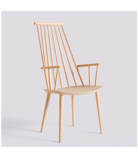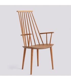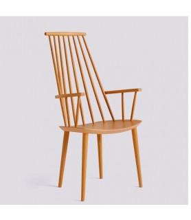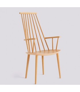 With the comfort of a lounge chair and the functionality of a dining chair, HAY’s reproduction of Poul M. Volther’s J110 Chair offers equal measures of strong aesthetics and practicality. Long rods at the back and curved armrests create an inviting expression. Crafted in solid oak or beech and available in a variety of oiled, natural or coloured finishes.