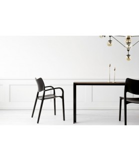 Laclásica es una silla llena de curvas que continúan las ondulaciones del cuerpo humano mimetizándose con ellas. Su forma es sensual y acogedora. En sus aspectos técnicos cabe destacar que el espaldo se funden con las patas de una manera fluida. Por debajo del asiento una pieza de aluminio inyectado hace la función de estructura de y le da enorme fortaleza. Es por eso que decimos que Laclasica es una sillas de madera con alma de aluminio.