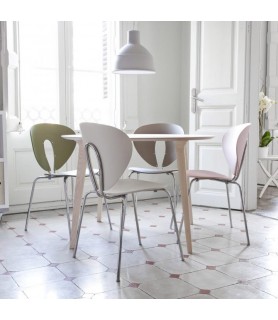 Globus es una silla fresca y ligera. Gracias a la forma curva de su respaldo tiene un confort envolvente. Su original silueta hace que la silla Globus sea un icono.
