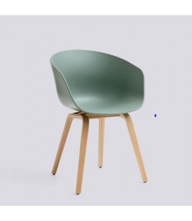 The About A Chair AAC 22 design exudes the functional simplicity that is characteristic of this entire collection. The solid shell comprises a curved back with armrests, providing excellent comfort and a soft, unified silhouette, while the four-legged wooden base adds a timeless, classic expression, ensuring greater stability and a longer lifetime. The wooden base is available in different finishes, with the post-consumer recycled plastic shell offered in a wide palette of contemporary colours, along with multiple front or fixed seat upholstery options. The multitude of variants and design combinations give this series a versatile expression that makes it suitable for a wide variety of corporate, private, and public contexts.