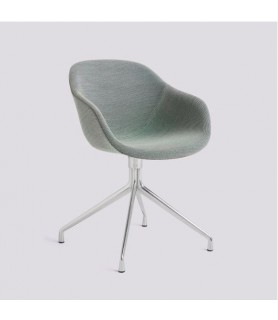 The AAC 221 counterbalances the more formal expression of the aluminium swivel base with the softness of the upholstered shell. Retaining the fundamental idea shared by the AAC collection, this variant is characterised by a curved shell with a slightly higher back. Designed with optimal functionality in mind, the shell construction offers a deep, generous seat that combines inviting aesthetics with a high level of comfort, whilst the lower armrests provide good support and enable the chair to fit underneath a table or desk.