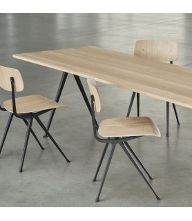 Result Chair presenta una base delgada de chapa de acero con un asiento y respaldo de roble, que conserva la máxima flexibilidad, ligereza y resistencia. Originalmente creada por Friso Kramer y Wim Rietveld mientras trabajaba en Ahrend en la década de 1950, la colección de acero recortado ha sido relanzada por HAY junto con Ahrend. Adecuado para su uso en muchos contextos públicos y privados, está disponible en una variedad de acabados de madera y colores base que se pueden coordinar con la Mesa Pirámide.