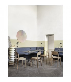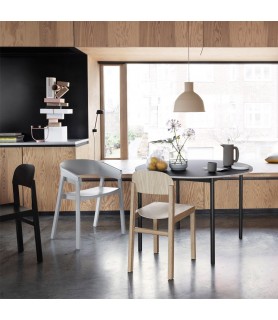 La silla de taller aporta un enfoque lúdico a la silla de madera. El diseño crea una nueva perspectiva sobre el diseño escandinavo arquetípico a través de su delgada carcasa trasera y el asiento ligeramente curvado que le da a la silla un aspecto distintivo.
