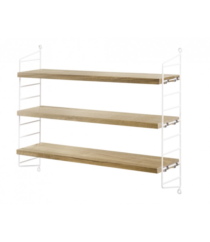 La estantería modular String Pocket fue diseñada en 1949 por Nisse Strinning para la marca String.La estantería String Pocket es uno de los clásicos del diseño más deseados y destaca por su estilo y gran versatilidad. La estantería String Pocket de String está formada por dos paneles laterales de metal lacado y 3 estantes que pueden ser de metal o de madera. La estantería String Pocket de String mide 60cm de ancho, 50cm de alto y 15cm de profundidad. Además, esta estantería se puede ampliar con otros estantes de la colección String. De esta manera, y siempre que lo necesite, podrá disponer de más sitio para colocar sus libros, fotografías, etc. ¡Diseñe su propia estantería String Pocket! La estantería String Pocket está disponible en varios colores y modelos.
