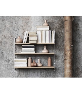 string pocket string pocket is a complete shelving package with two panels and three shelves. you can choose among a range of colours and materials. string pocket can be combined in a host of ways. with one packet you get one shelf, with two packets you can build up to three sections.