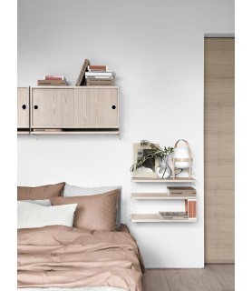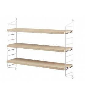 string pocket string pocket is a complete shelving package with two panels and three shelves. you can choose among a range of colours and materials. string pocket can be combined in a host of ways. with one packet you get one shelf, with two packets you can build up to three sections.