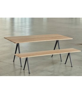 Diseñado para ser funcional, ligero y fuerte, el Banco Pyramid presenta una base delgada de chapa de acero con una tapa rectangular de roble. Originalmente creada por Wim Rietveld mientras trabajaba en Ahrend en la década de 1950, la colección de acero recortado ha sido relanzada por HAY junto con Ahrend. El banco viene en dos modelos y se puede usar como una mesa auxiliar baja o una solución de asiento en una amplia variedad de contextos domésticos o corporativos. Ambas variantes están disponibles en varios acabados de madera y colores base que se pueden coordinar con la mesa Pyramid.